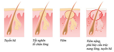 - Do tuyến bã nhờn hoạt động quá mức, làm sản sinh lượng dầu dư thừa dẫn đến lỗ chân lông bị tắc